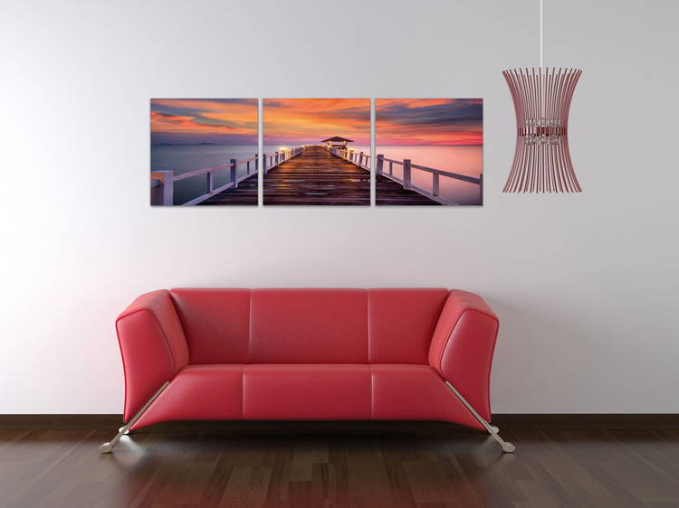 Alpenglow over pier Mounted Art Print