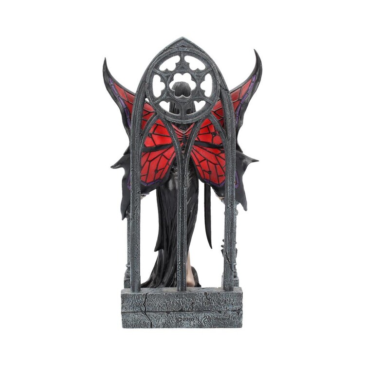 From the Gothic imagination of darkly talented alternative artist Anne Stokes, this enchanting Fairy figurine is from Fantasy brand Nemesis Now's giftware collection,. Standing in a long black dress, this dark Fairy stands barefoot on the floor of a church between two grey stone posts, the Gothic arch of a church window rising behind her. She looks at you suggestively, her long black hair having a single red streak in. Her black and red wings are stretched out behind her and have a spider web pattern, matching the black and red spider pendant she wears. A black spider crawls up one of the posts. Cast in the finest resin before being painstakingly hand-painted, this a perfect gift for any who want a sense of danger and excitement in their home.