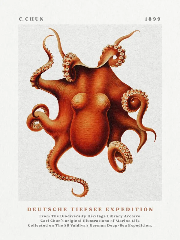 Poster Deutsche Tiefsee Expedition Poster No.3 (Vintage Octopus) - Carl Chun