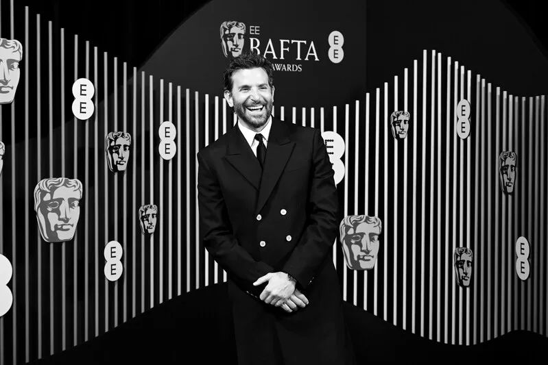 LONDON, ENGLAND - FEBRUARY 18: (EDITORS NOTE: Image has been converted to black and white.) Bradley Cooper attends the EE BAFTA Film Awards 2024 at The Royal Festival Hall on February 18, 2024 in London, England. (Photo by Kate Green/BAFTA/Getty Images for BAFTA)