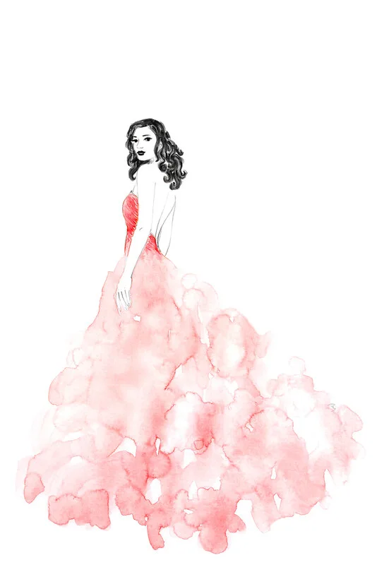 Poster Fashion illustration long coral dress