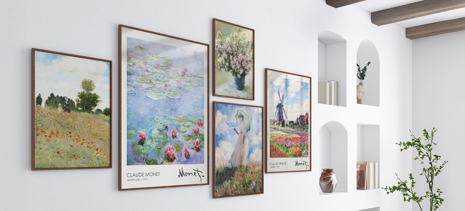 Claude Oscar Monet (1840–1926) was an important French painter of the Impressionist period. He uses the technique of colour patches to capture nature or reflections of the water surface, thus recording the atmosphere of the moment. The main motifs in his work are water surfaces, water lilies, poplars or cathedrals. Monet achieved recognition in the late 1880's and died as famous and wealthy artist.