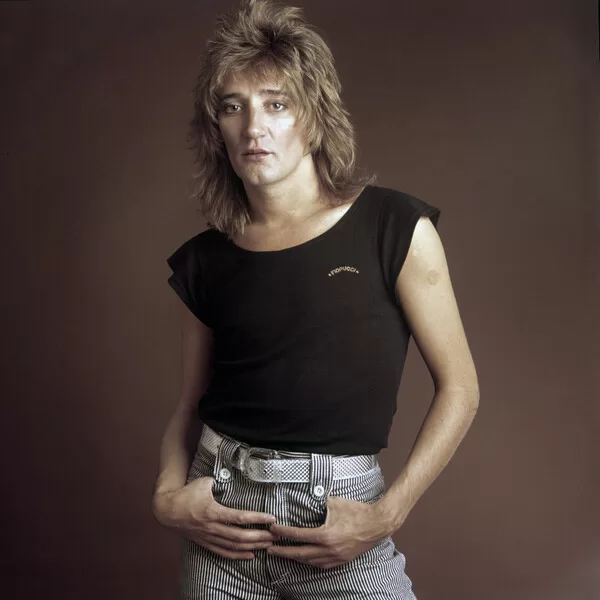 Poster Portrait de Rod Stewart chanteur anglais au milieu des annees 1970.