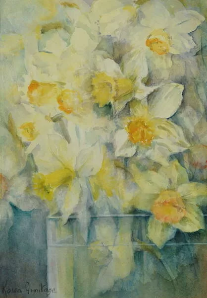 Canvas Print Spring Time, mixed daffodils in tank No 3., Mrs Krelage, Ice Follies and Fortune