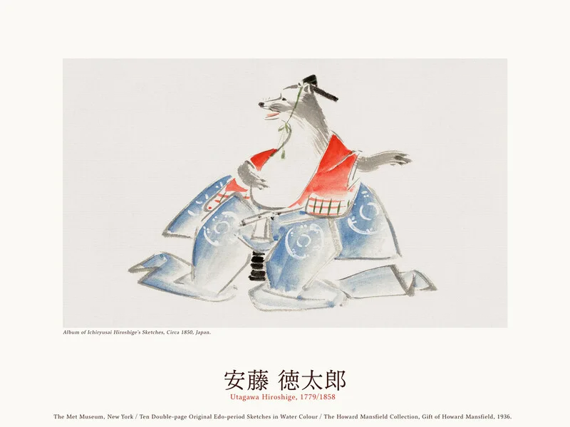 Poster Stote / Polecat (Japanese Animal Sketch) - Utagawa Hiroshige