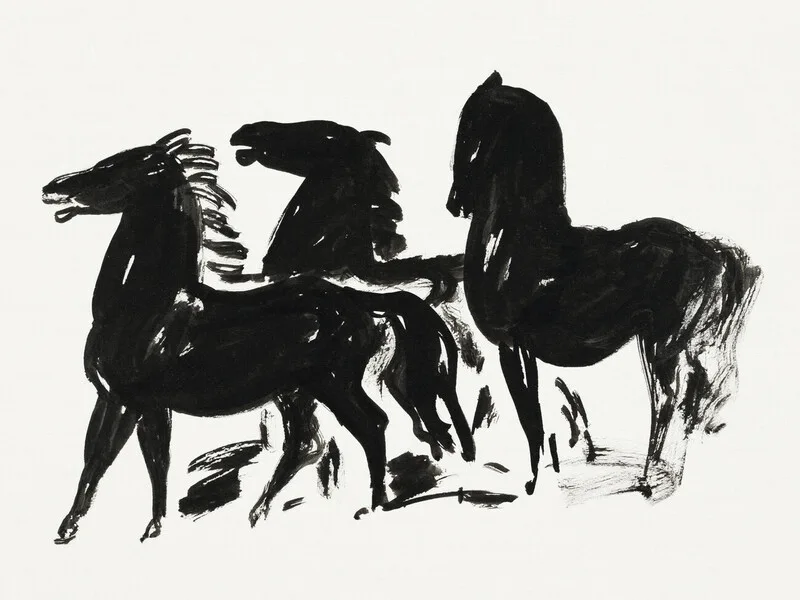Poster Three Black Horses (Retro Monochrome Graphic) - Leo Gestel