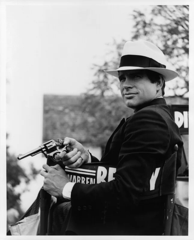 Warren Beatty holds a pistol in a promotional portrait for the film 'Bonnie And Clyde', 1967. (Photo by Warner Brothers/Getty Images)