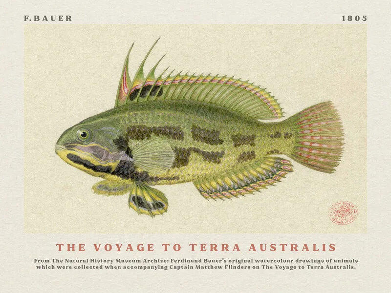 Poster Watercolour Rainbow Cale Fish from The Voyage to Terra Australis (Vintage Academia) - Ferdinand Bauer