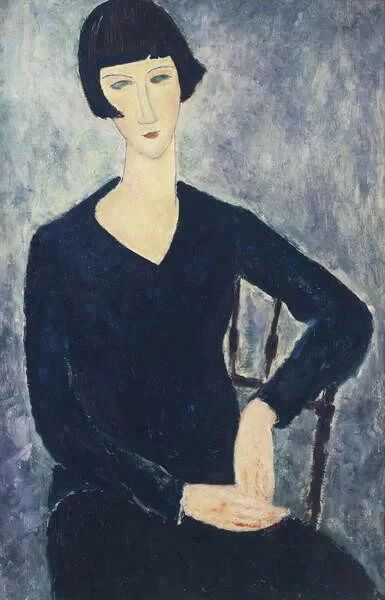 Young woman with a fringe or young seated woman in blue dress, 1918, by Amedeo Modigliani , oil on canvas, 92x60 cm.