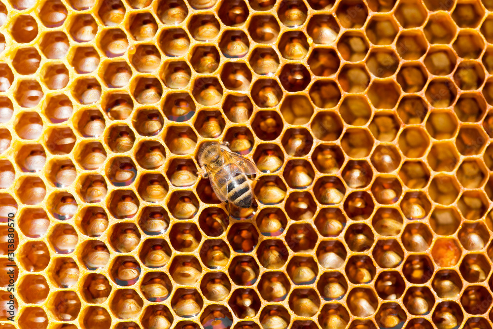 Photography bees work on honeycomb