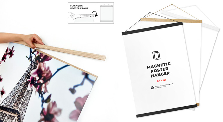 Looking for an original and stylish way to hang your poster? Our magnetic wooden rails and plastic rails are the perfect solution.