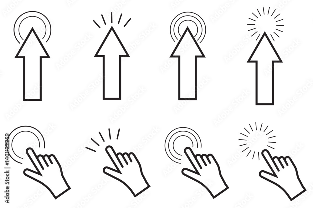 Photography Blue Cursor Click, Computer mouse icon set, vector arrow collection on Transparent Background