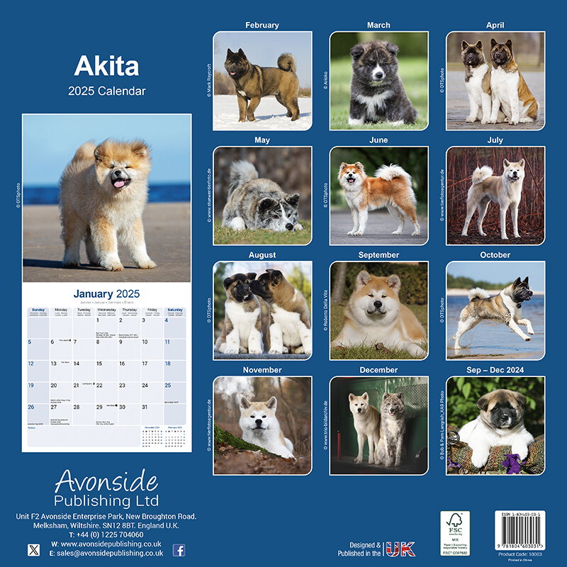 • You can hang the calendar Akita on any wall