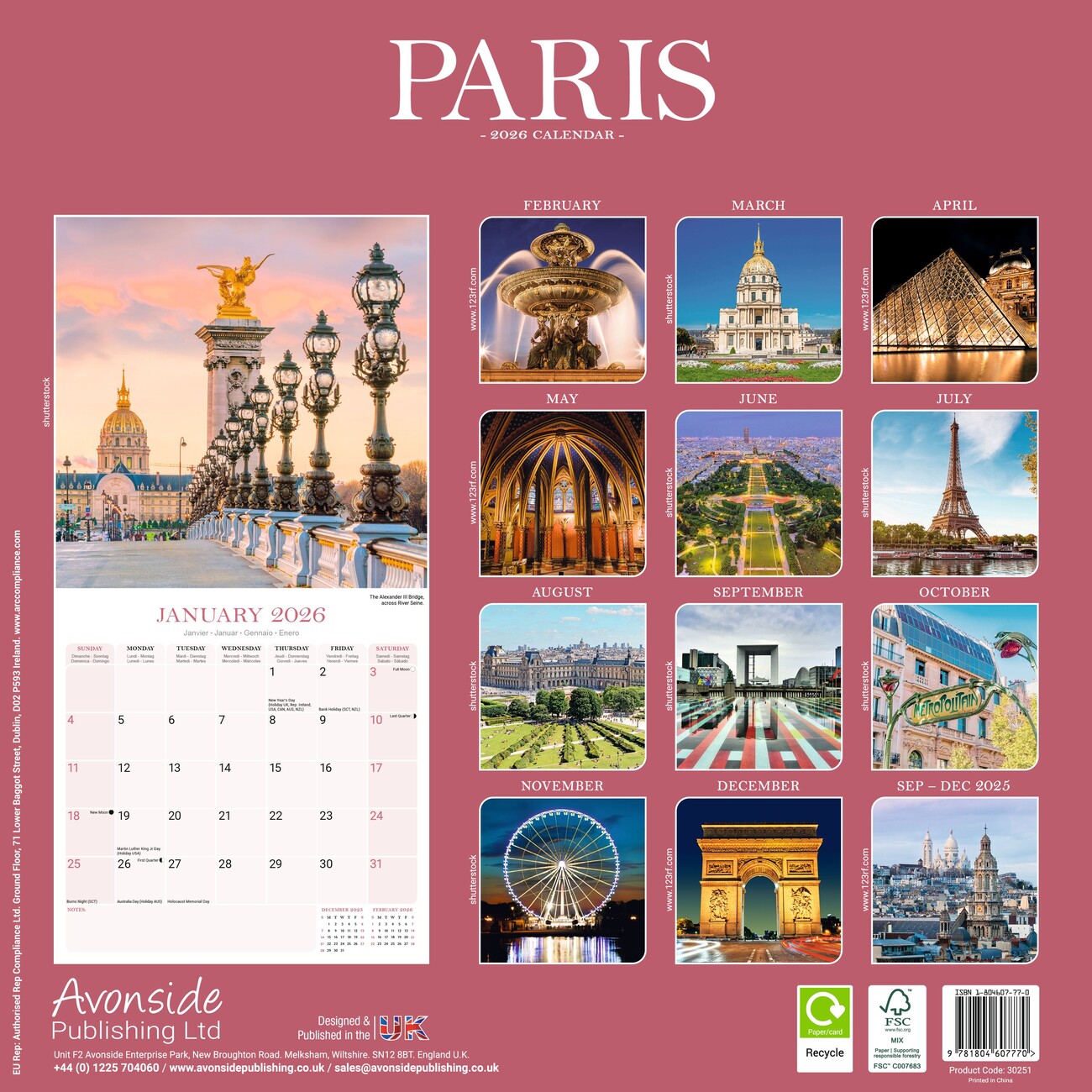 • You can hang the calendar Paris on any wall