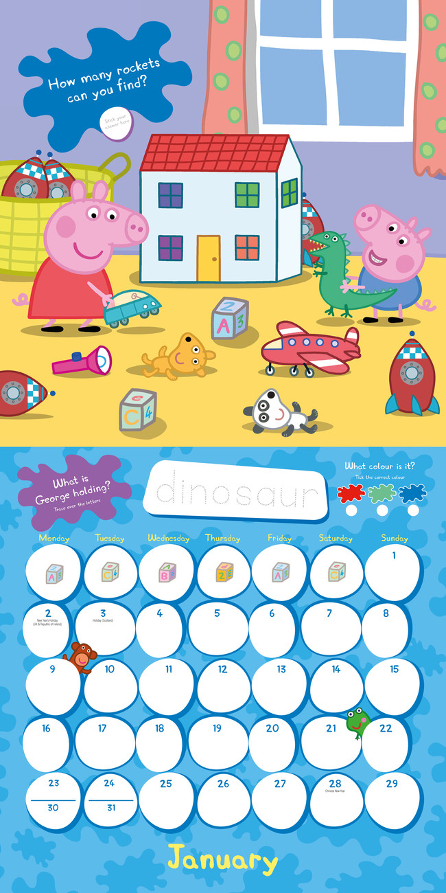• You can hang the calendar Peppa Pig on any wall