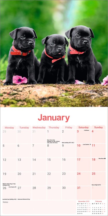 • You can hang the calendar Stafford Bull Terrier on any wall