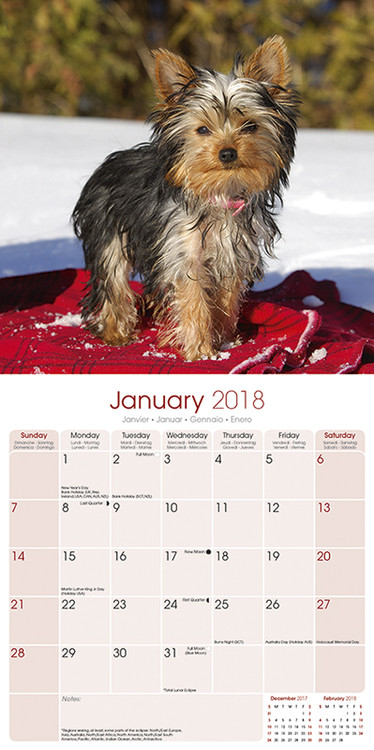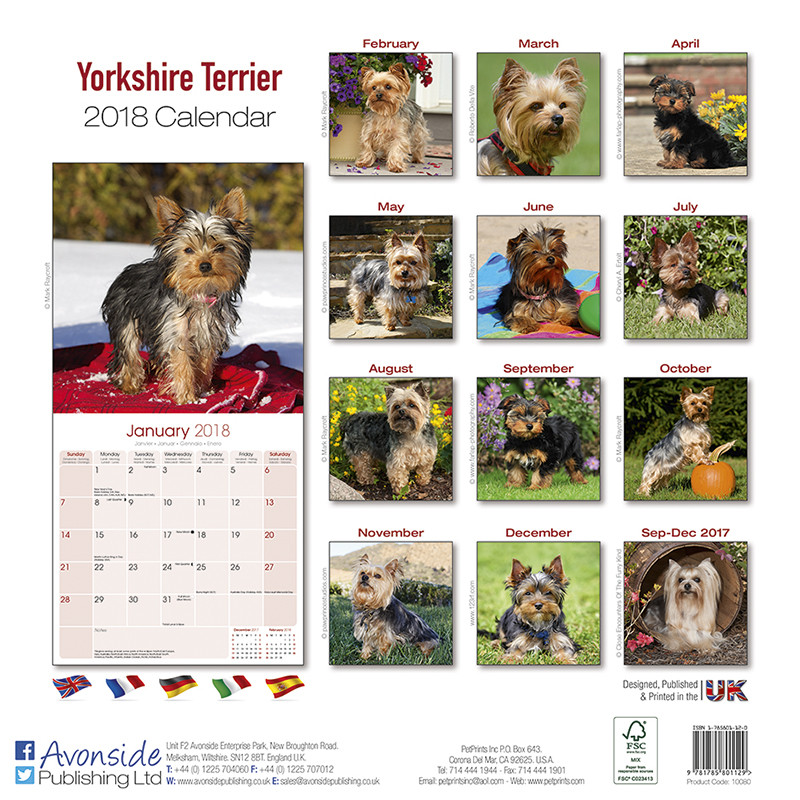 Calendar 2018 Yorkshire Terrier