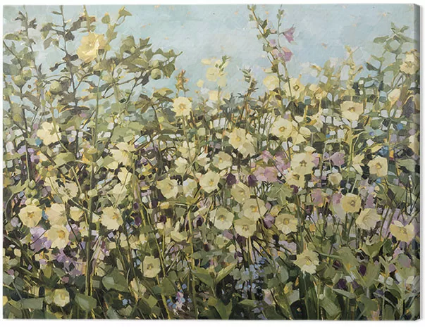 Canvas Print Anne-Marie Butlin - Yellow Hollyhocks