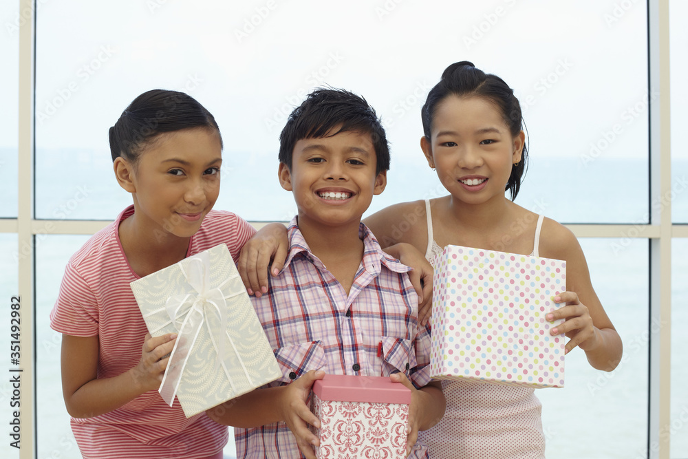 Photography Children with gift boxes