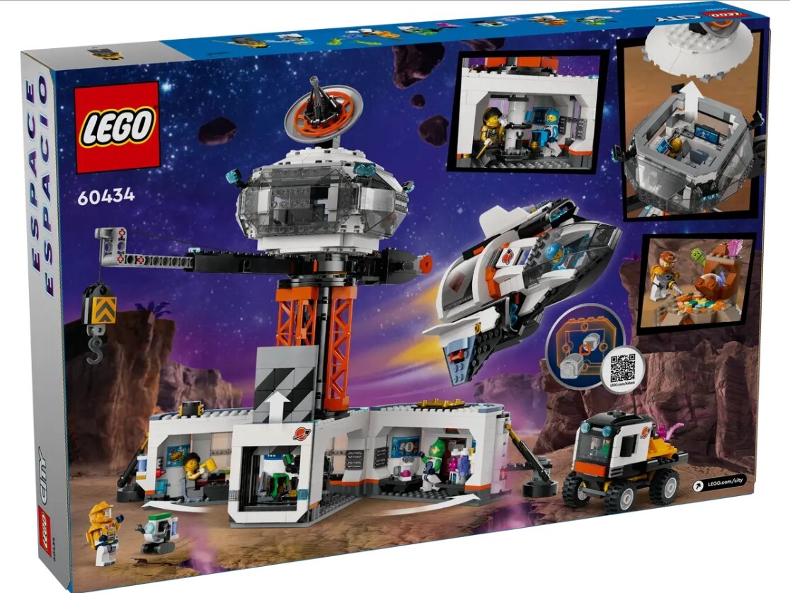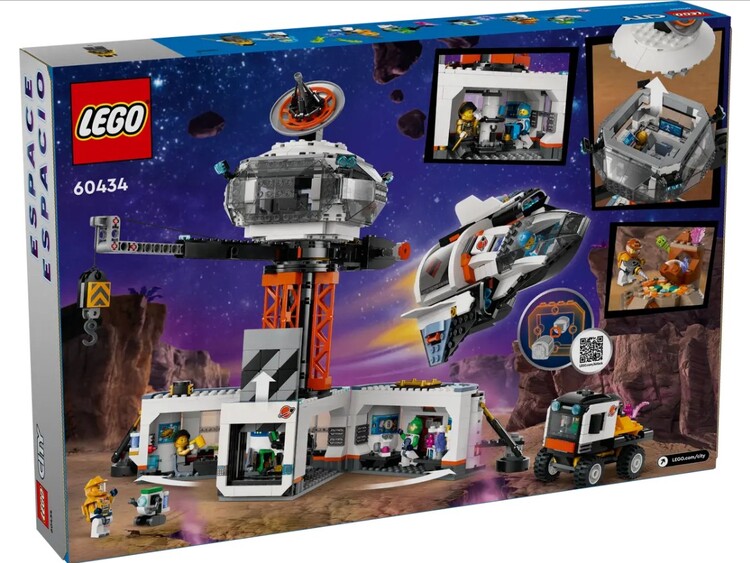 The space exploration playset 60434 LEGO® City Space Base and Rocket Launch Pad for ages 8 and up is packed with features for out-of-this-world adventures. You'll discover a control room and a 360° space tower crane above the main sector that opens access to the equipment carousel, science lab and refreshment area. The set also includes a spaceship, launch pad, construction vehicle and planet scenery with play energy crystals and vegetation, plus 6 space crew minifigures and 1 robot and 2 alien figures for imaginative role-play. Take the kids on an exciting building adventure with the LEGO® Builder app. Here, they can zoom in and rotate models in 3D to visualize them from all angles as they work on them. The LEGO City building set comes with realistic vehicles, detailed structures and inspiring characters for imaginative play without limits. The rocket ship in this set includes a special space airlock element to connect to other compatible LEGO space-themed play sets (sold separately) for even more adventure!