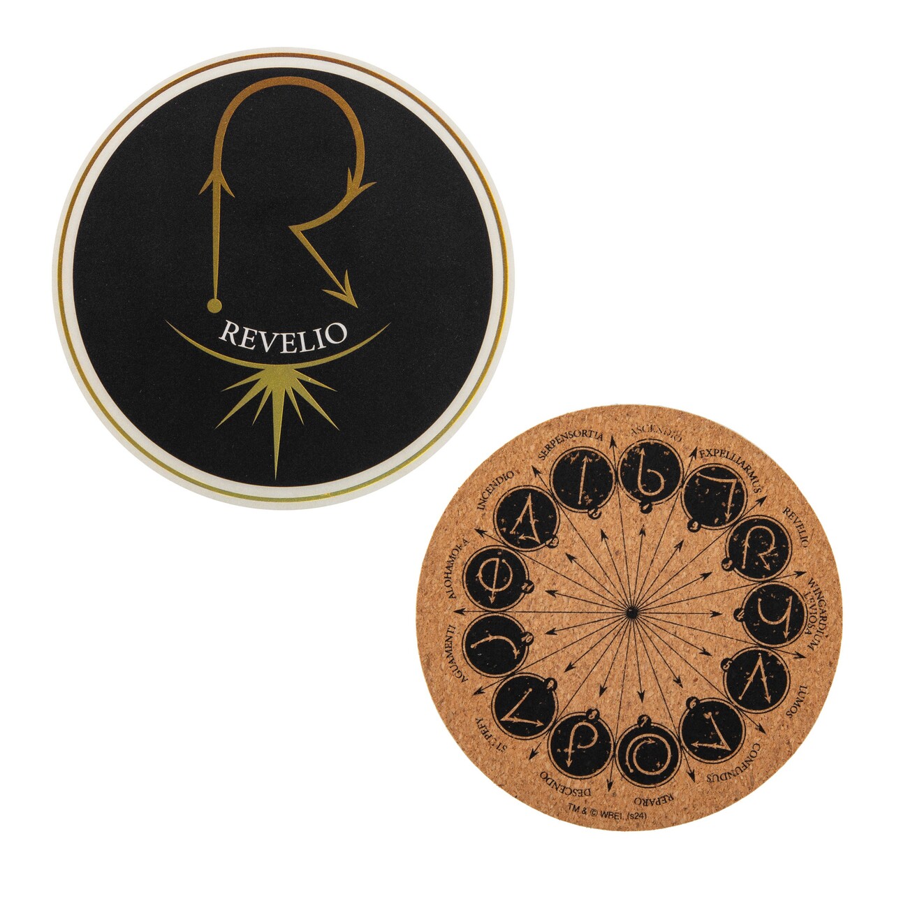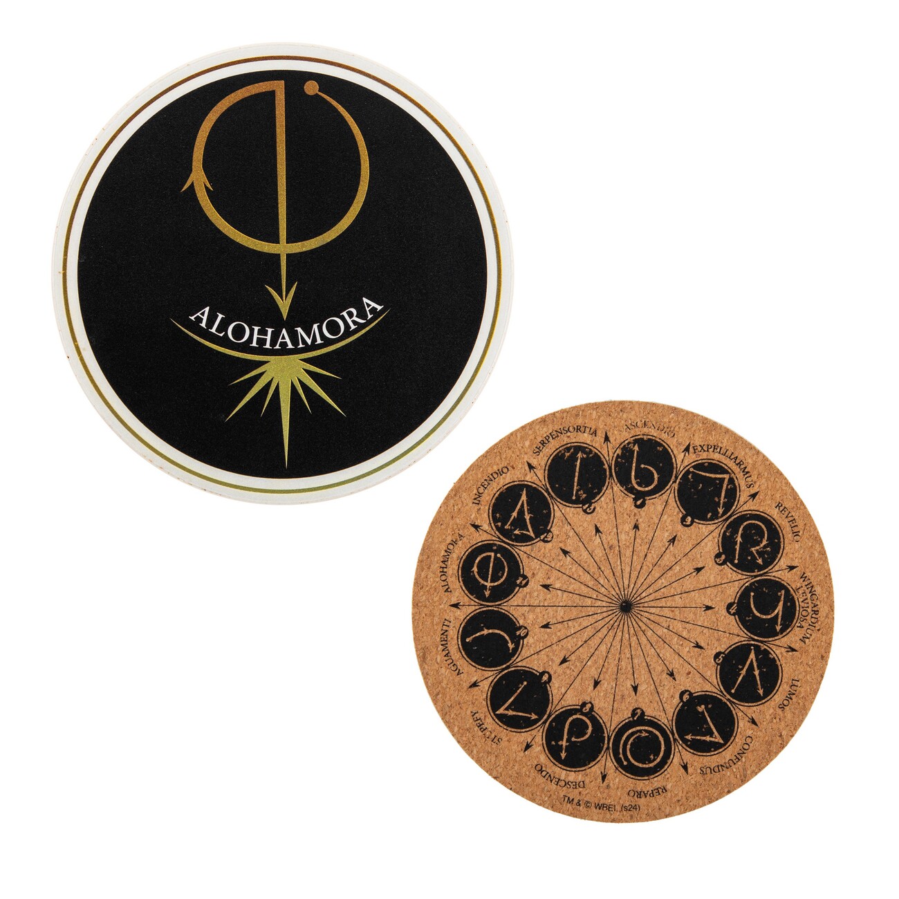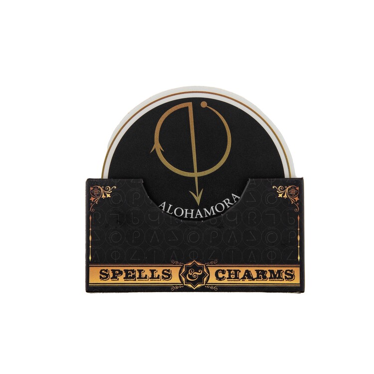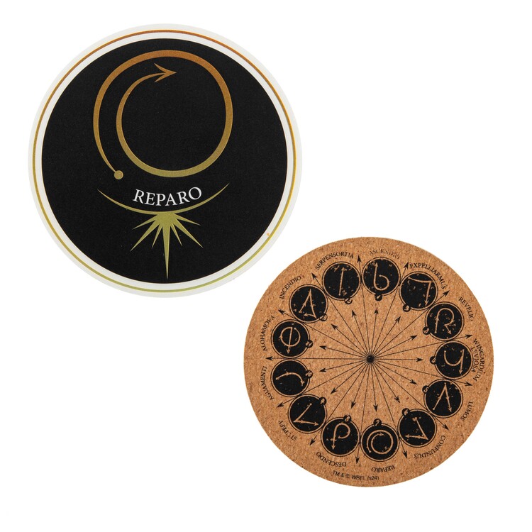 Bring a touch of wizarding magic to your table with this set of coasters inspired by iconic spells from the Harry Potter universe. The coasters are made of cork (9.5 × 9.5 × 0.3 cm) and come with a cardboard holder (10.5 × 5.5 × 2 cm).