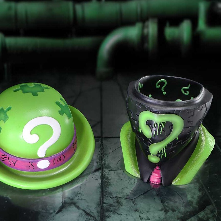 Officially licensed DC box with The Riddler motif, hand-painted, featuring a green-purple hat lid and bold question mark. A carefully crafted storage piece for Gotham fans, supplied in a gift box.