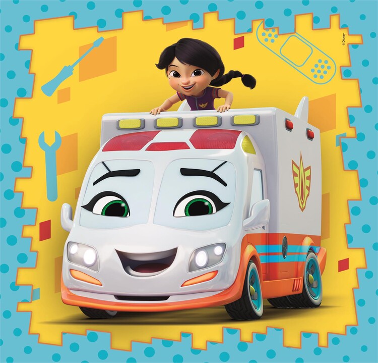 Set of 3 puzzles (3×48 pieces). Fun vehicle pictures delight young fans of wheels. Pieces are easy to hold and slide smoothly together, so children naturally train fine motor skills and focus. Clementoni puzzles deliver crisp print and precise die-cutting. Packed in a robust, elegant box.