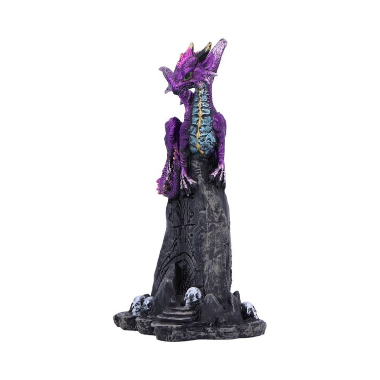This vibrant dragon figurine showcases a hand-painted purple beast wrapped around a dark pillar. With metallic amethyst scales, subtle silver highlights, and runes and skull motifs on the base, it is crafted from premium resin to capture every detail. A striking collectible for dragon fans, gothic décor lovers, and fantasy enthusiasts. Comes in a branded gift box, perfect for gifting or safe storage.