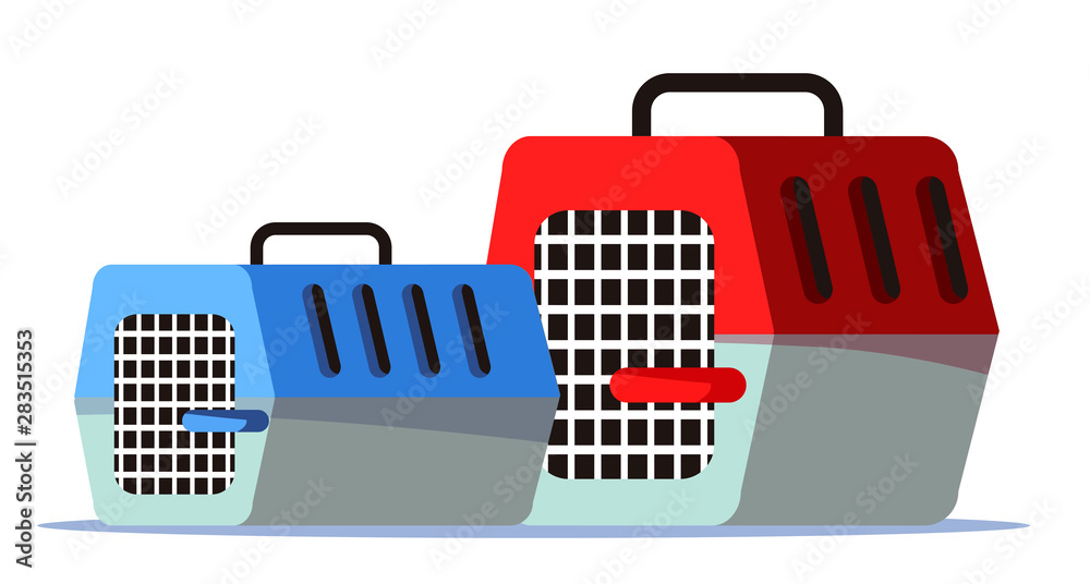 Photography Empty pet carriers, cages flat vector illustration