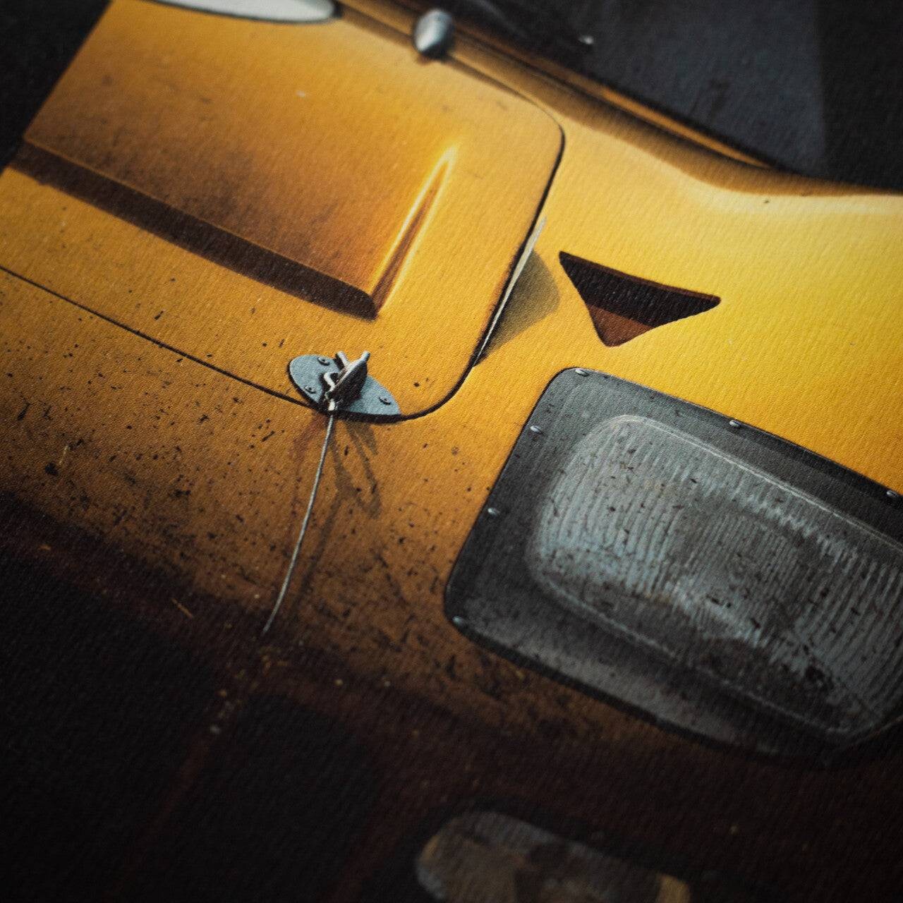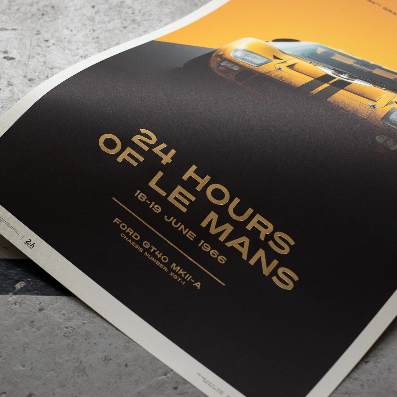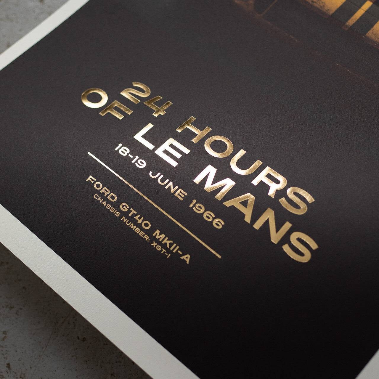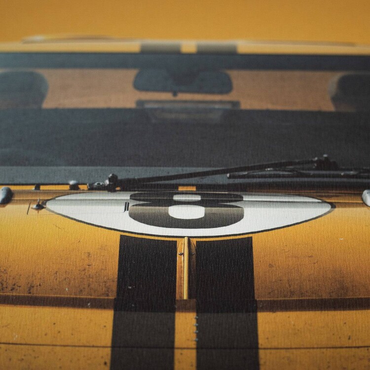 This poster features the yellow-colored Alan Mann Racing Ltd. GT40 driven by Sir John Whitmore and Frank Gardner in ‘66.