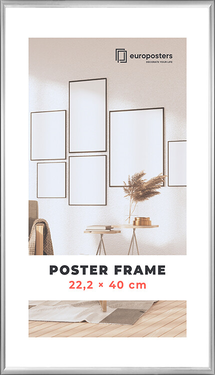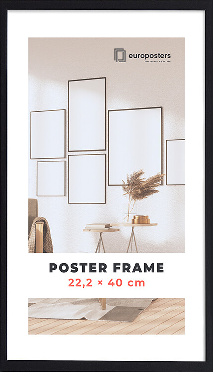 High quality European made poster frame with plexiglass and MDF board. On the back it contains steel handles on both sides for easy hanging. Does not contain a passepartout.