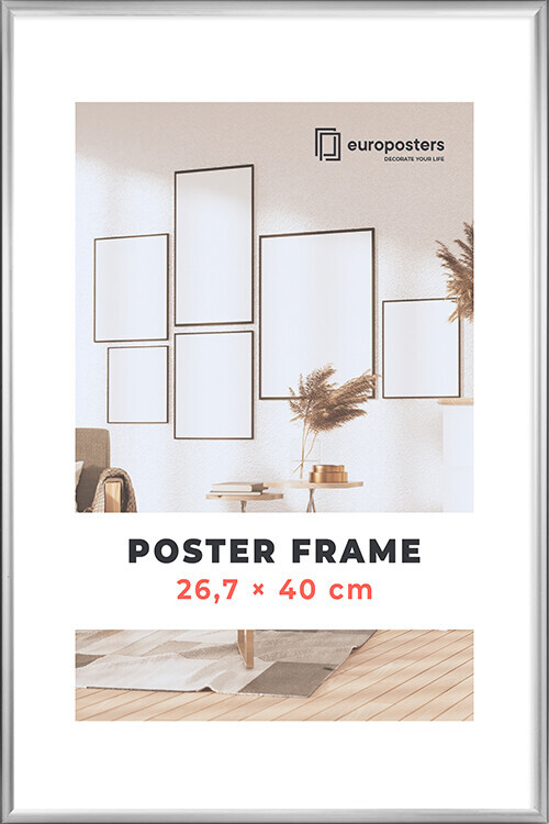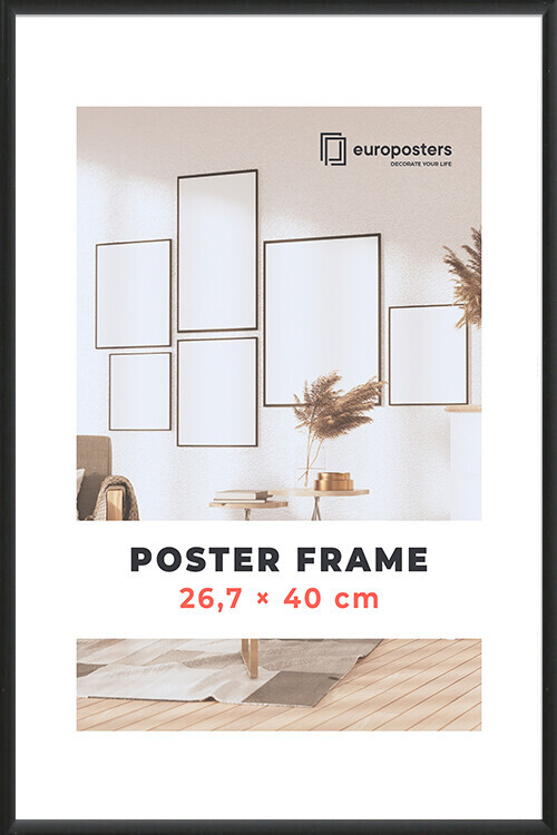 High quality European made poster frame with plexiglass and MDF board. On the back it contains steel handles on both sides for easy hanging. Does not contain a passepartout.