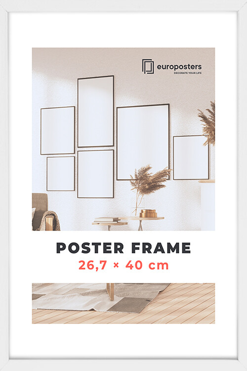 High quality European made poster frame with plexiglass and MDF board. On the back it contains steel handles on both sides for easy hanging. Does not contain a passepartout.