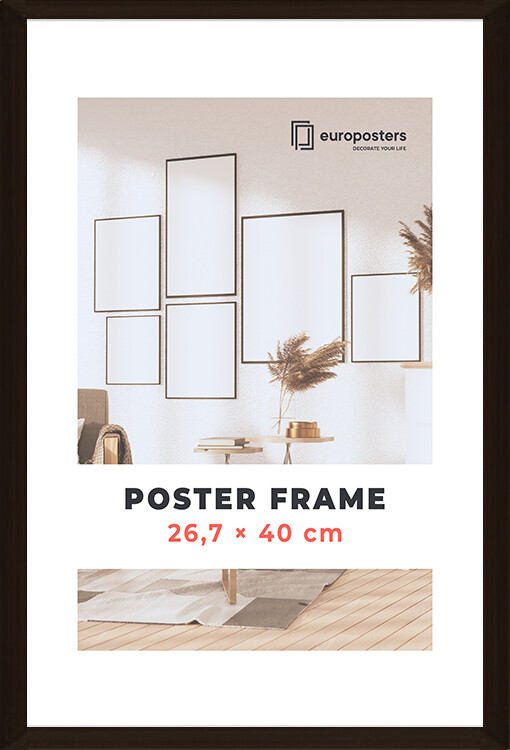 High quality European made poster frame with plexiglass and MDF board. On the back it contains steel handles on both sides for easy hanging. Does not contain a passepartout.