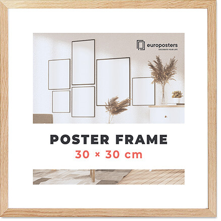 High quality European made poster frame with plexiglass and MDF board. On the back it contains steel handles on both sides for easy hanging. Does not contain a passepartout.