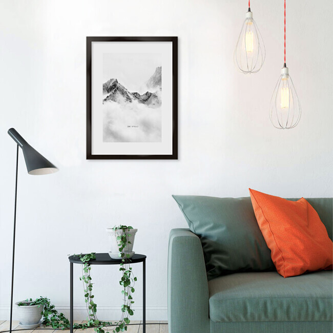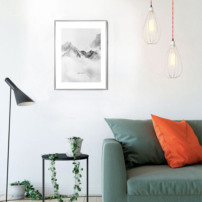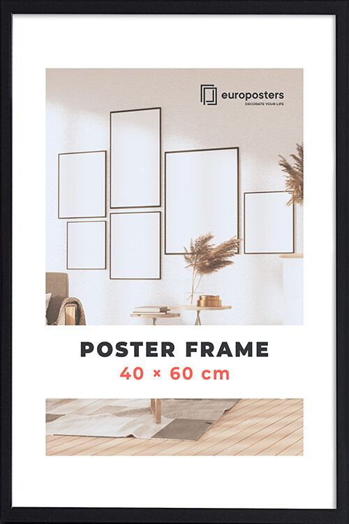 High quality European made poster frame with plexiglass and MDF board. On the back it contains steel handles on both sides for easy hanging. Does not contain a passepartout.