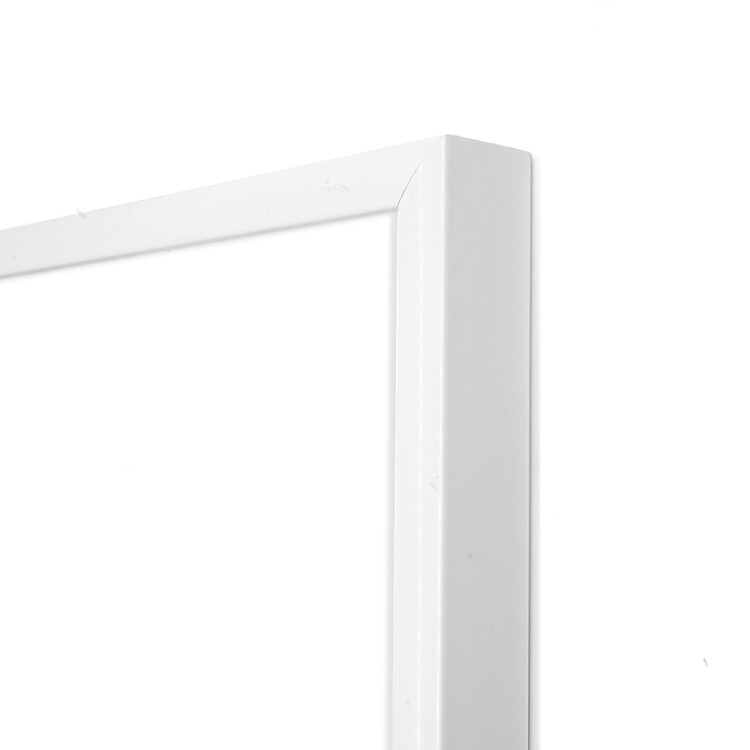 High quality European made poster frame with plexiglass and MDF board. On the back it contains steel handles on both sides for easy hanging. Does not contain a passepartout.