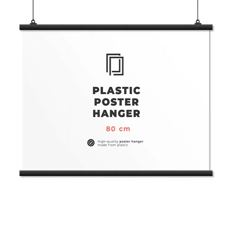 The poster rails pack contains 2 pieces of plastic rails + 2 sliders to hang them on nails or stretch a string between them.