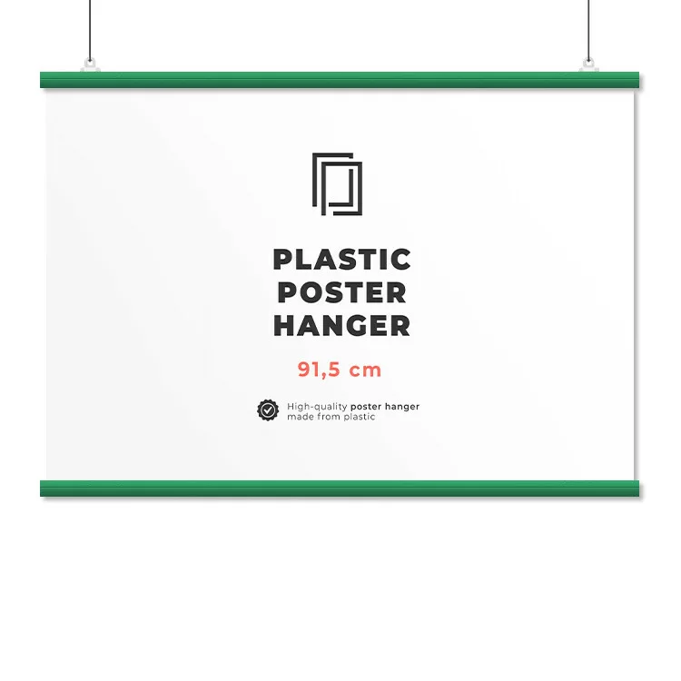 The poster rails pack contains 2 pieces of plastic rails + 2 sliders to hang them on nails or stretch a string between them.