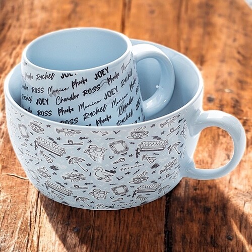 The Friends Doodle Breakfast Set for Friends fans who want to enjoy breakfast with a touch of nostalgia. Includes 850 ml ceramic bowl and 380 ml mug.