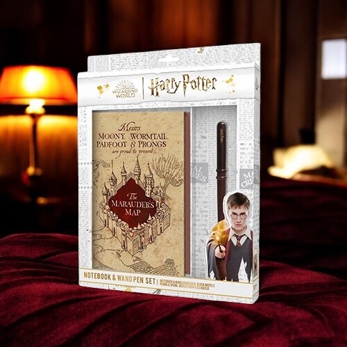 The premium Harry Potter set includes a notebook with a themed design and a writing pen in the shape of a magic wand. A practical gift for fans of the wizarding world.