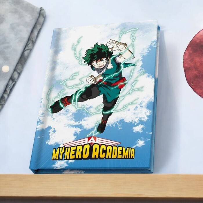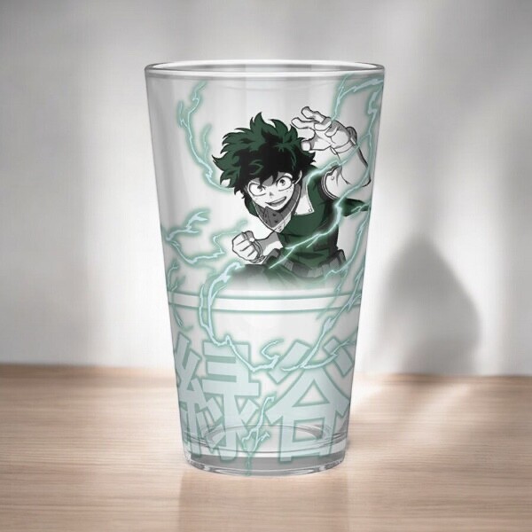 The high-quality My Hero Academia gift set includes a 400 ml XXL glass, a metal badge and a pocket notebook for adventurous travels.