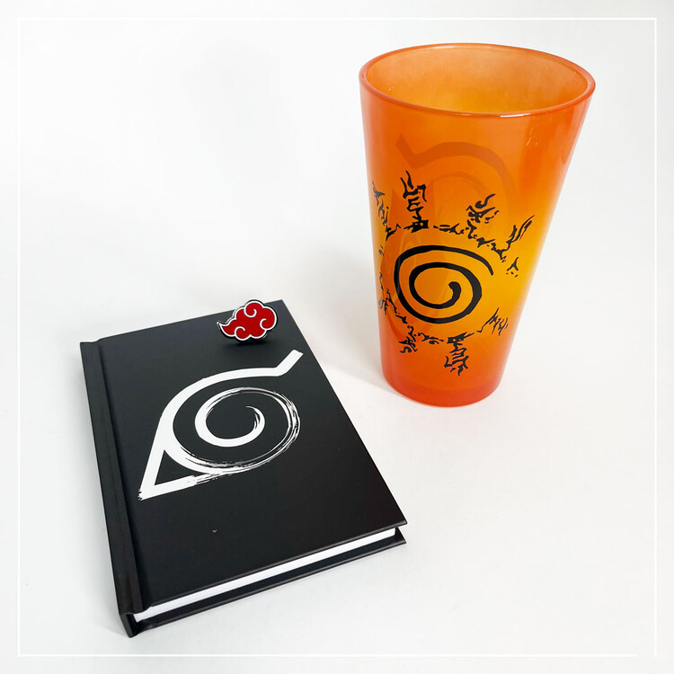 This stylish set is the perfect gift for any Naruto fan! Includes 400ml glass, lined A6 notebook and metal badge.