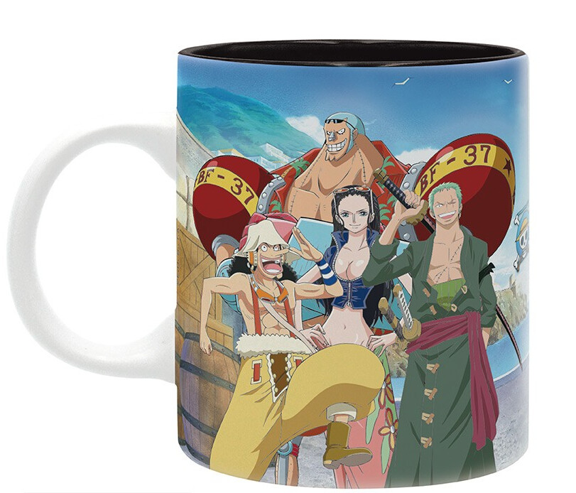 The set contains a mug, an acrylic figurine, and 5 postcards.