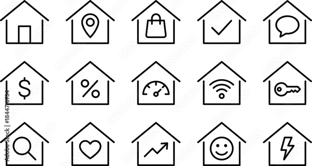 Photography Home interface icon set featuring location, shopping, analytics, communication,