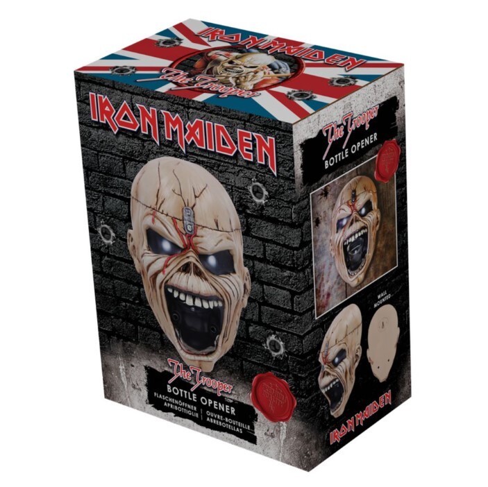 Show your allegiance to the Monsters of Rock with this electrifying Iron Maiden The Trooper Bottle Opener. Crafted with precision and adorned with the menacing scream of Eddie, this bottle opener is more than just a tool, but a tribute to the band's music and persona. Ensuring that your favourite bottled beverages are opened with ease, this Eddie Head Bottle Opener is the perfect home accessory for any Iron Maiden Fan!