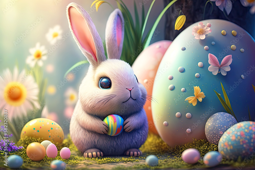 Photography Little rabbit with easter, Happy easter day, Generative AI