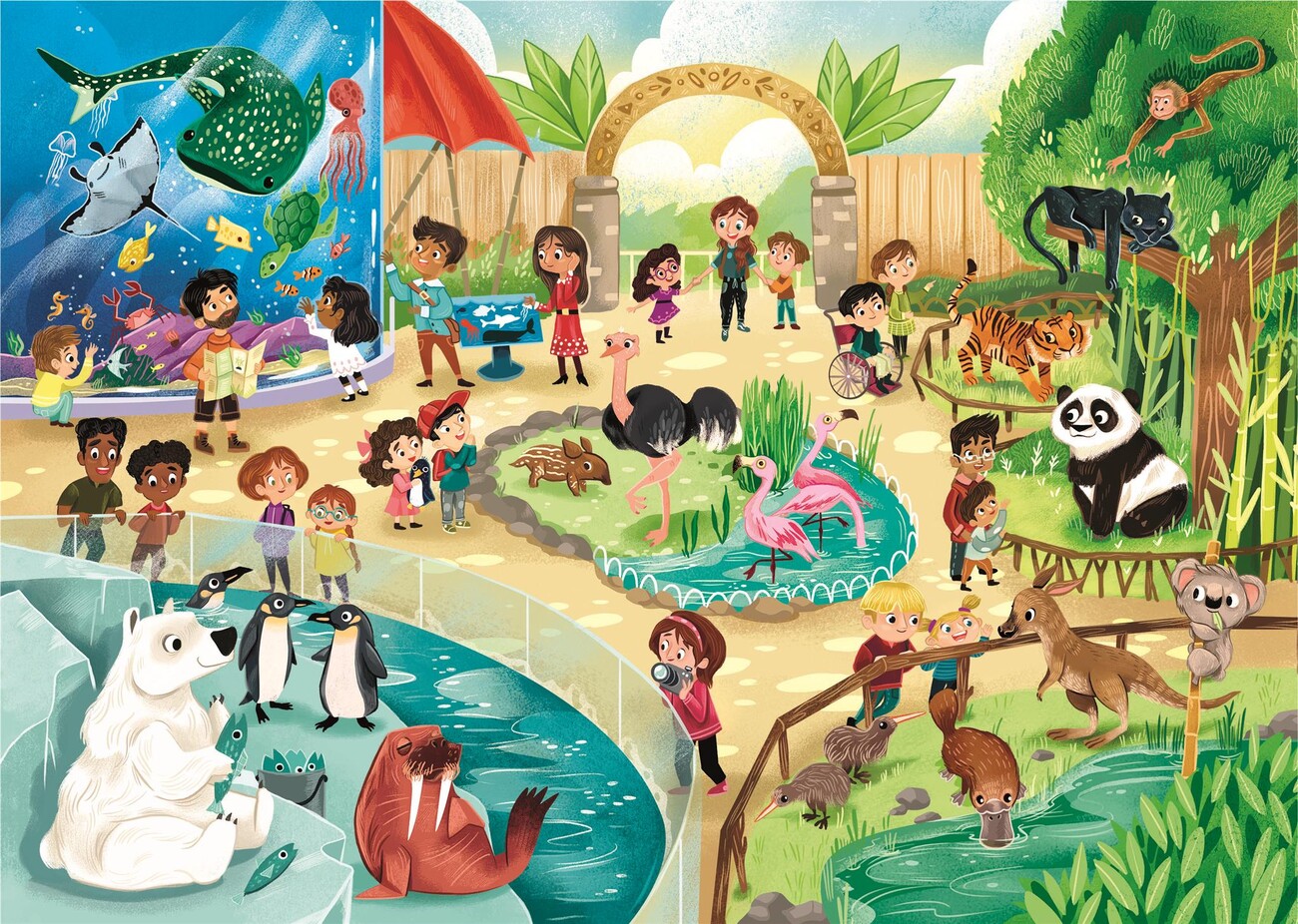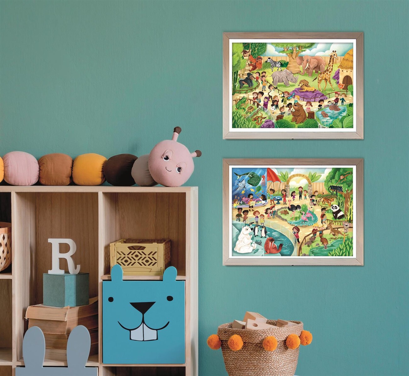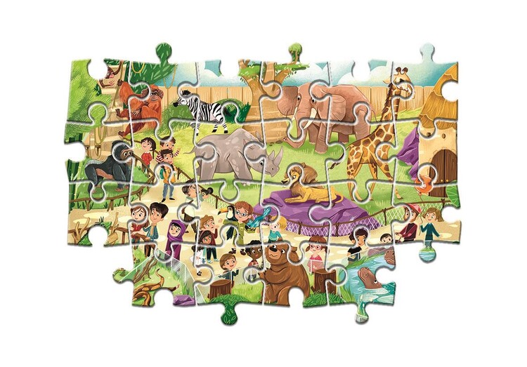 Two puzzles – life at the zoo (2×60 pieces). Cheerful scenes invite observation and learning about animals. Bright colours make sorting easy, and precisely shaped pieces fit together smoothly. Clementoni puzzles feature crisp print and accurate die-cutting, so assembly feels calm and confident. Packed in a robust, elegant box.