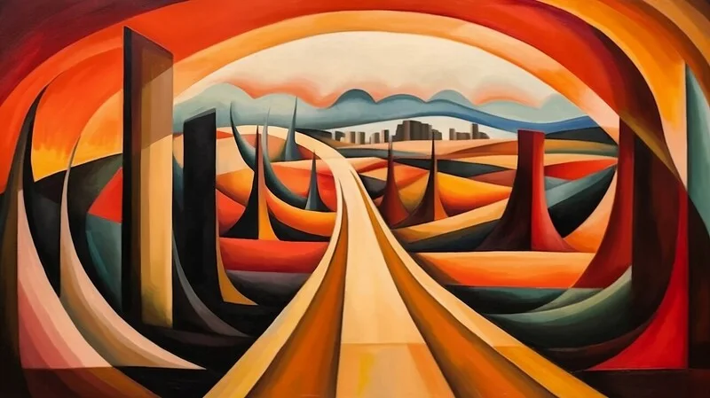Poster A dynamic cubist painting of a road