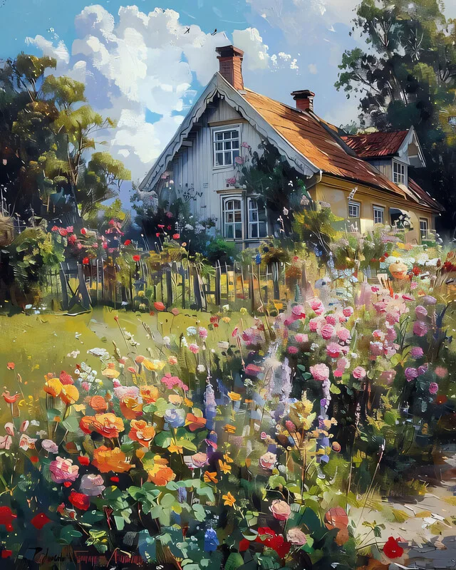 Poster A Garden of an Old House: A Nostalgic painting, art prints